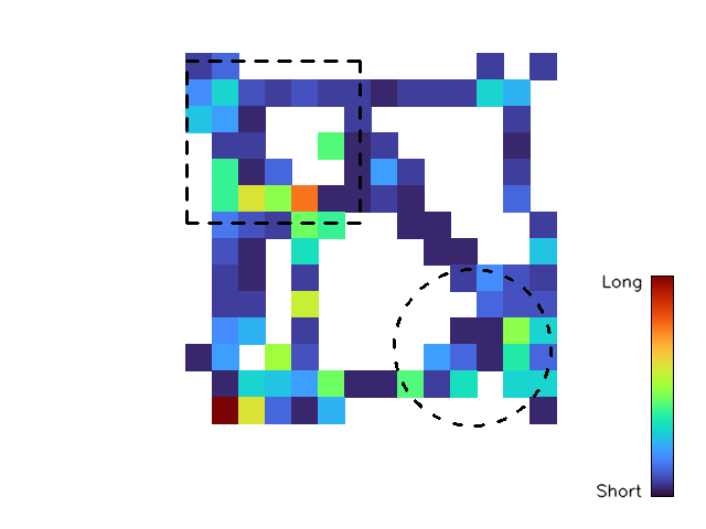- どう役立つか?: 頻繁に使われる「通り道」や「主要な移動ルート」を特定するのに役立ちます。滞在時間ヒートマップでは見えにくい、目的地間を結ぶ「廊下」や「道路」のような経路を明らかにします。